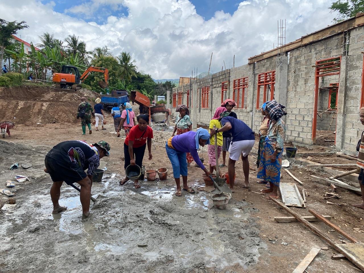Peran aktif masyarakat begitu terlihat. Ibu-ibu membantu mengangkut material, sementara para bapak berada di posisi strategis melakukan pengecoran dan penyusunan konstruksi. Semua dilakukan dengan penuh tanggung jawab dan rasa memiliki.
