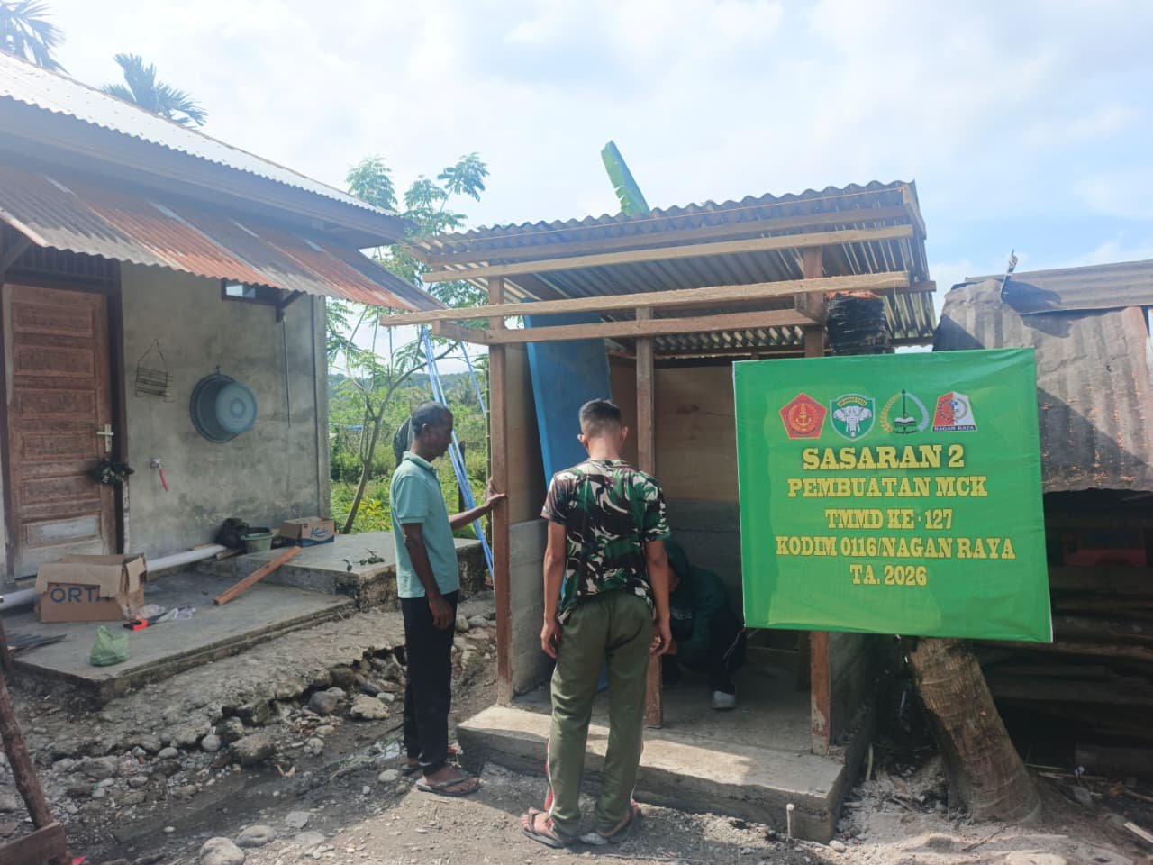 NAGAN RAYA – Pembangunan fasilitas umum berupa Mandi Cuci Kakus (MCK) pada titik kedua dalam program TNI Manunggal Membangun Desa (TMMD) Ke-127 Kodim 0116/Nagan Raya kini memasuki tahap pembuatan kerangka dinding dan pintu, Kamis (26/2/2026). Progres ini menjadi penanda bahwa bangunan tersebut semakin mendekati tahap penyelesaian.