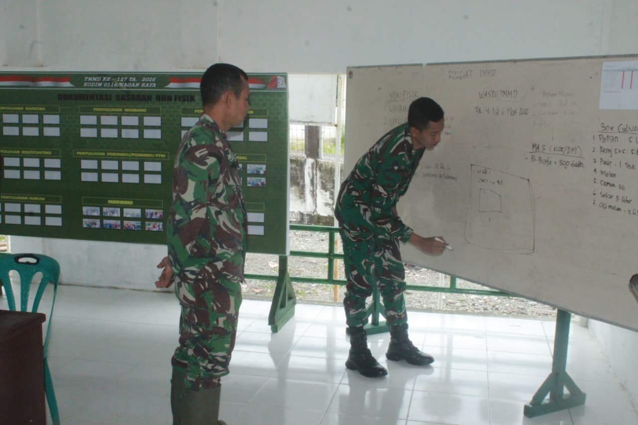 NAGAN RAYA – Pos Komando Taktis (Kotis) TMMD Ke-127 Kodim 0116/Nagan Raya yang berlokasi di Kantor Desa Ujung Blang, Kecamatan Beutong, menjadi pusat denyut nadi pengendalian seluruh pekerjaan sasaran fisik maupun nonfisik. Dari tempat inilah arah kebijakan, pembagian tugas, hingga evaluasi progres harian dikendalikan secara sistematis dan terukur.