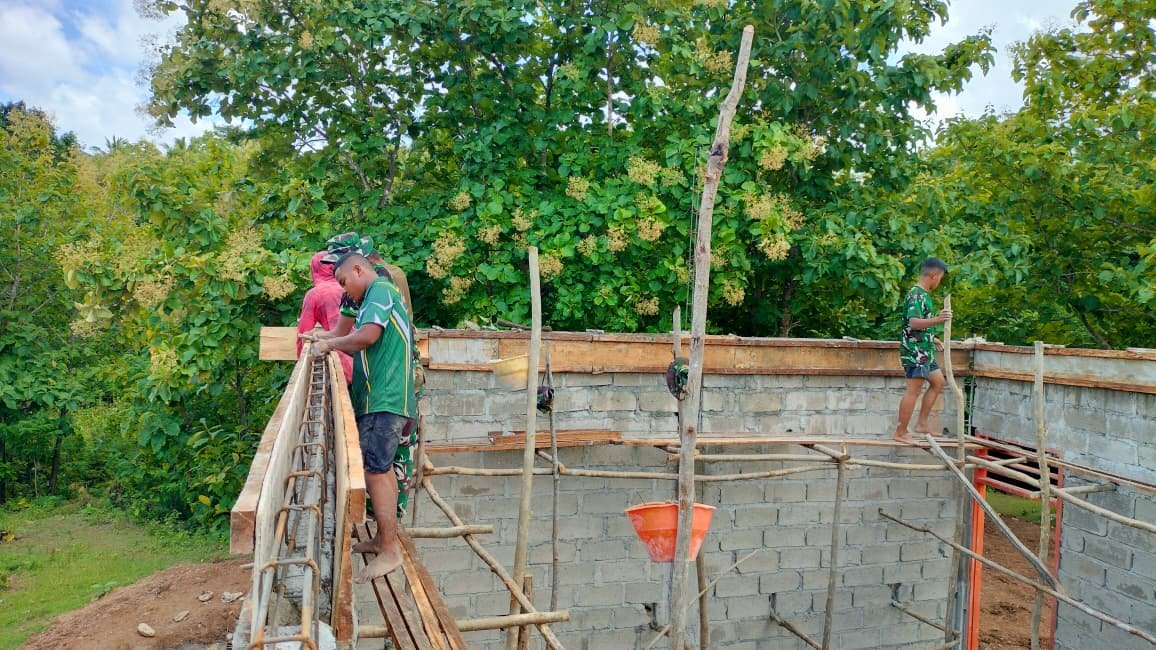 NTT–Kefamenanu – Tahapan pemasangan papan cor slof atas 4 RKB SMAN Bikomi Nilulat menandai langkah penting dalam progres TMMD Ke-127 Kodim 1618/TTU.