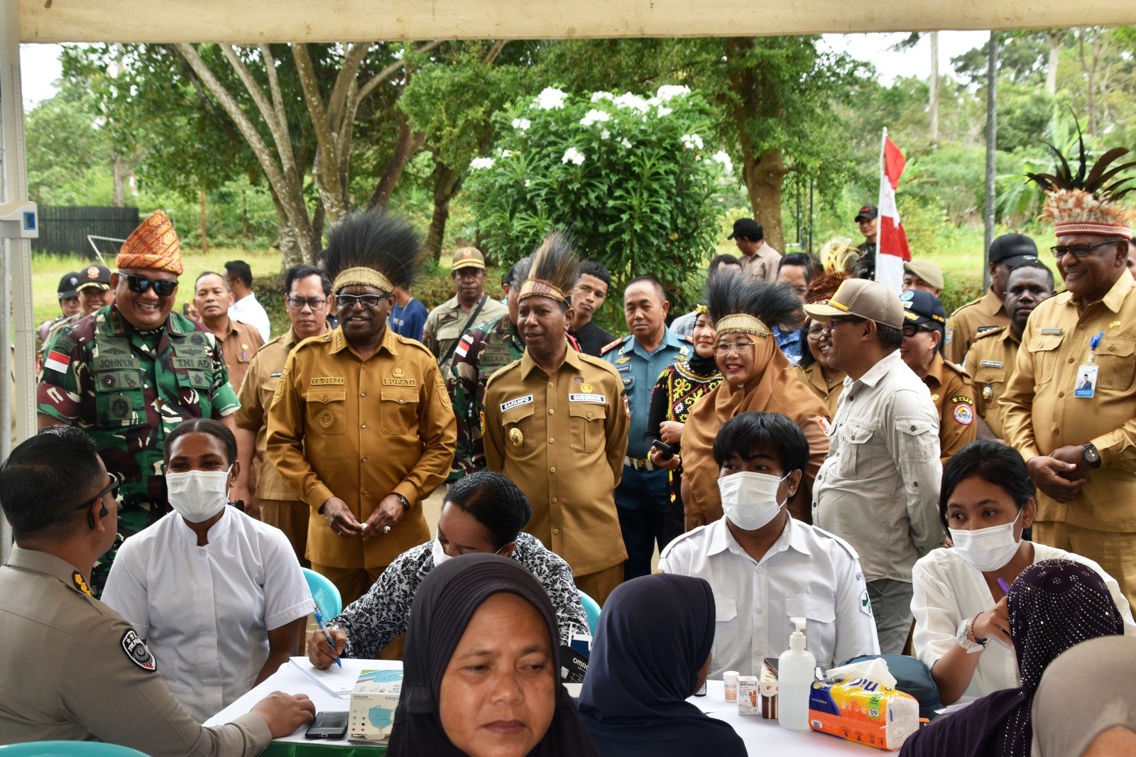 Nampak hadir Ketua DPR Provinsi Papua Selatan Heribertus Silvinus Silubun, S.H., Wakil Bupati Merauke Dr. Fauzun Nihayah, S.HI., M.H., Kapolres Merauke AKBP Leonardo Yoga, S.I.K., M.M., Ketua MRP Prov. Papua Selatan Damianus Katayu, S.I.P., MA., Kepala Kantor Cabang Bulog Merauke Karenu, S.E., Kadis Tanaman Pangan Josefa Loise Rumaseuw, S. Hut. dan Administrator PLBN Sota Brendina Mathilda Pusung, SE, M.M.