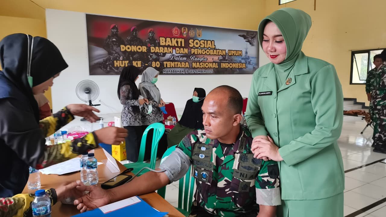Barito Kuala, Kalimantan Selatan – Dalam rangka memperingati Hari Ulang Tahun ke-80 Tentara Nasional Indonesia (TNI), Kodim 1005/Barito Kuala menggelar kegiatan Bakti Sosial Donor Darah dan Pengobatan Umum. Acara ini berlangsung di Aula Mochammad Yamin, Makodim 1005/Batola, Jl. Panglima Batur, Kecamatan Marabahan, Kabupaten Barito Kuala, pada Kamis (18/9).