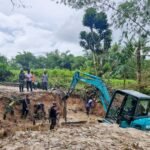Meskipun pekerjaan ini cukup melelahkan, anggota Satgas TMMD tetap menjalankannya dengan penuh semangat dan kebersamaan. Mereka saling bahu-membahu mendorong gerobak berisi pasir melintasi medan yang cukup menantang, demi memastikan pembangunan jembatan berjalan sesuai jadwal.