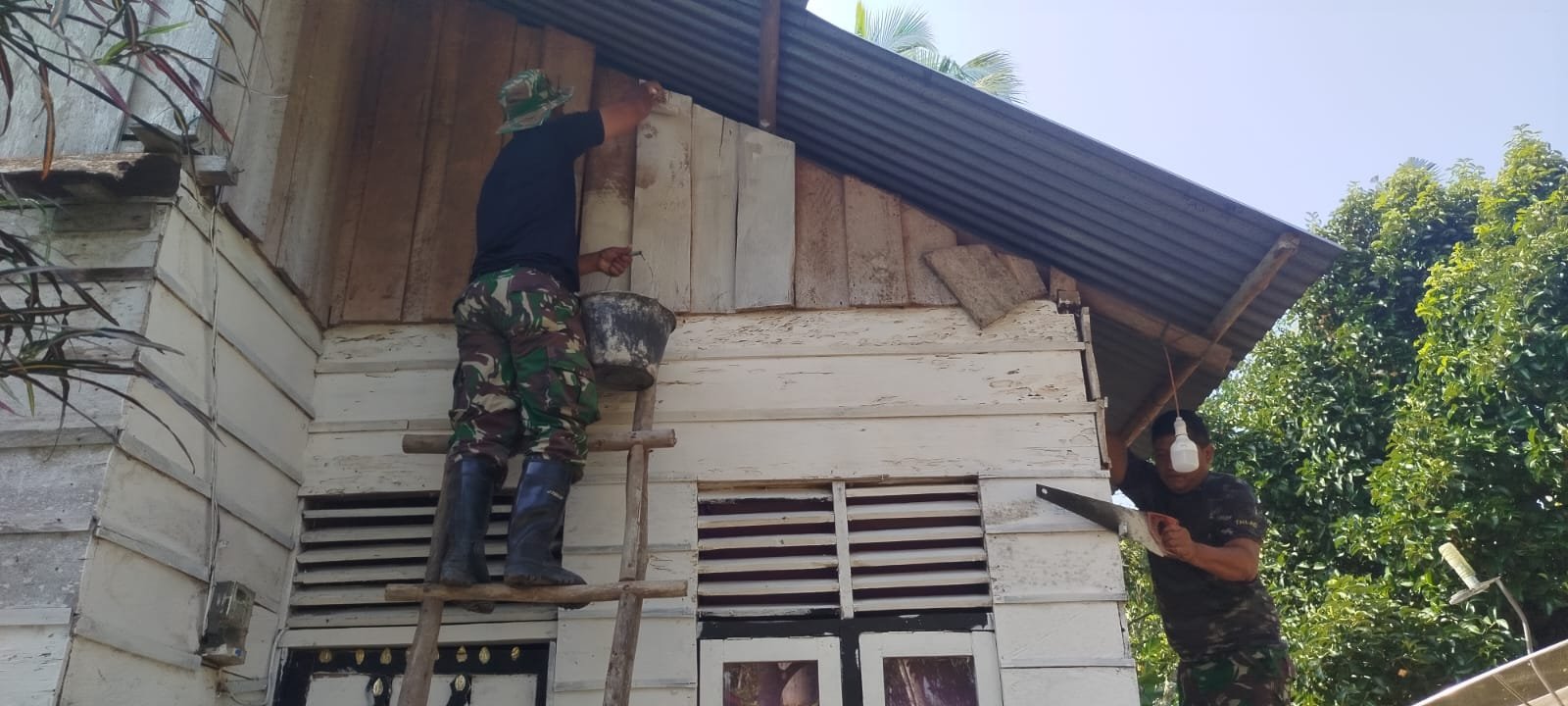 Selasa (10/3/2026), suasana di lokasi TMMD masih dipenuhi aktivitas. Beberapa personel terlihat menyelesaikan pekerjaan terakhir pada sasaran rehab Rumah Tidak Layak Huni (RTLH). Pengecatan dinding dan perapian bagian rumah dilakukan agar bangunan tersebut benar-benar siap ditempati oleh pemiliknya.