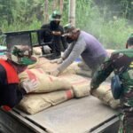 Tanpa kenal lelah, anggota Satgas TMMD bersama warga bahu membahu menyelesaikan pekerjaan meskipun cuaca sempat diguyur gerimis. Semangat dan kerja sama tetap menyala, demi mempercepat realisasi pembangunan jalan yang sudah lama diidamkan masyarakat setempat.