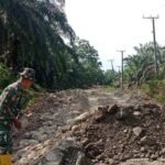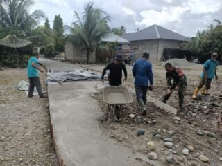 Menggunakan alat sederhana seperti cangkul, sekop, dan angkong, para prajurit dan masyarakat bahu-membahu meratakan tumpukan batu dan pasir. Kegiatan ini menjadi bukti nyata semangat gotong royong demi kemajuan desa.