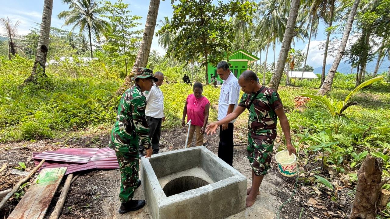Sumur bor tersebut berada di depan rumah milik Evelina Surawi yang menjadi salah satu penerima manfaat pembangunan rumah dalam program TMMD.