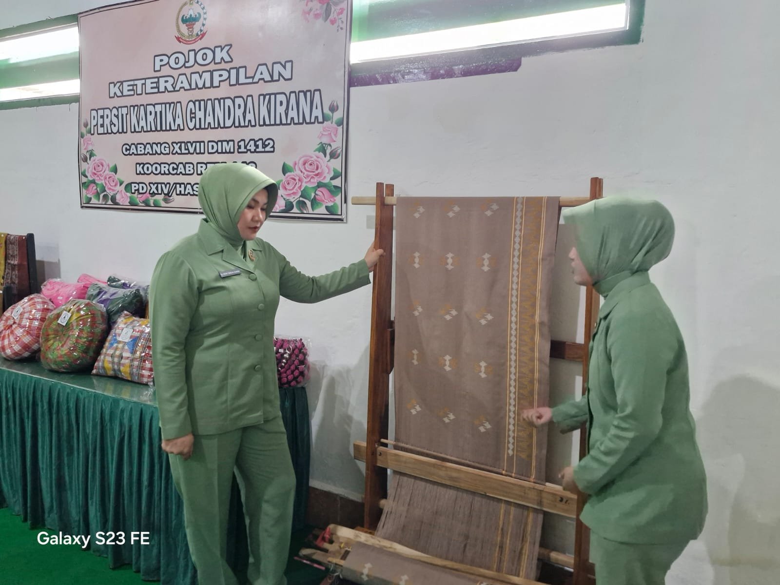 Kolaka – Ketua Persit Kartika Chandra Kirana Daerah XIV/Hasanuddin, Ny. Renny Bangun Nawoko, memberikan dukungan penuh terhadap pengembangan UMKM Persit KCK Cabang XLVII Dim 1412/Kolaka, khususnya dalam pengembangan kerajinan kain tenun khas daerah yang menjadi warisan budaya lokal serta memiliki motif tradisional dan modern yang relevan dengan perkembangan zaman.