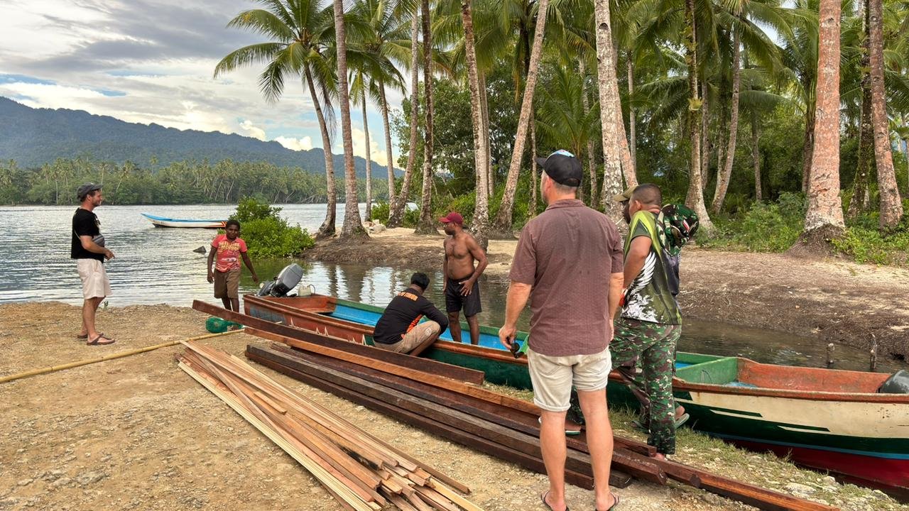 Kaimana – Semangat kebersamaan kembali terlihat pada 25/02/2026 saat anggota Satgas TMMD ke-127 Kodim 1804/Kaimana melaksanakan pengiriman kayu untuk pembangunan kedudukan profil rumah dan MCK di Kampung Sisir, Distrik Kaimana, Kabupaten Kaimana.