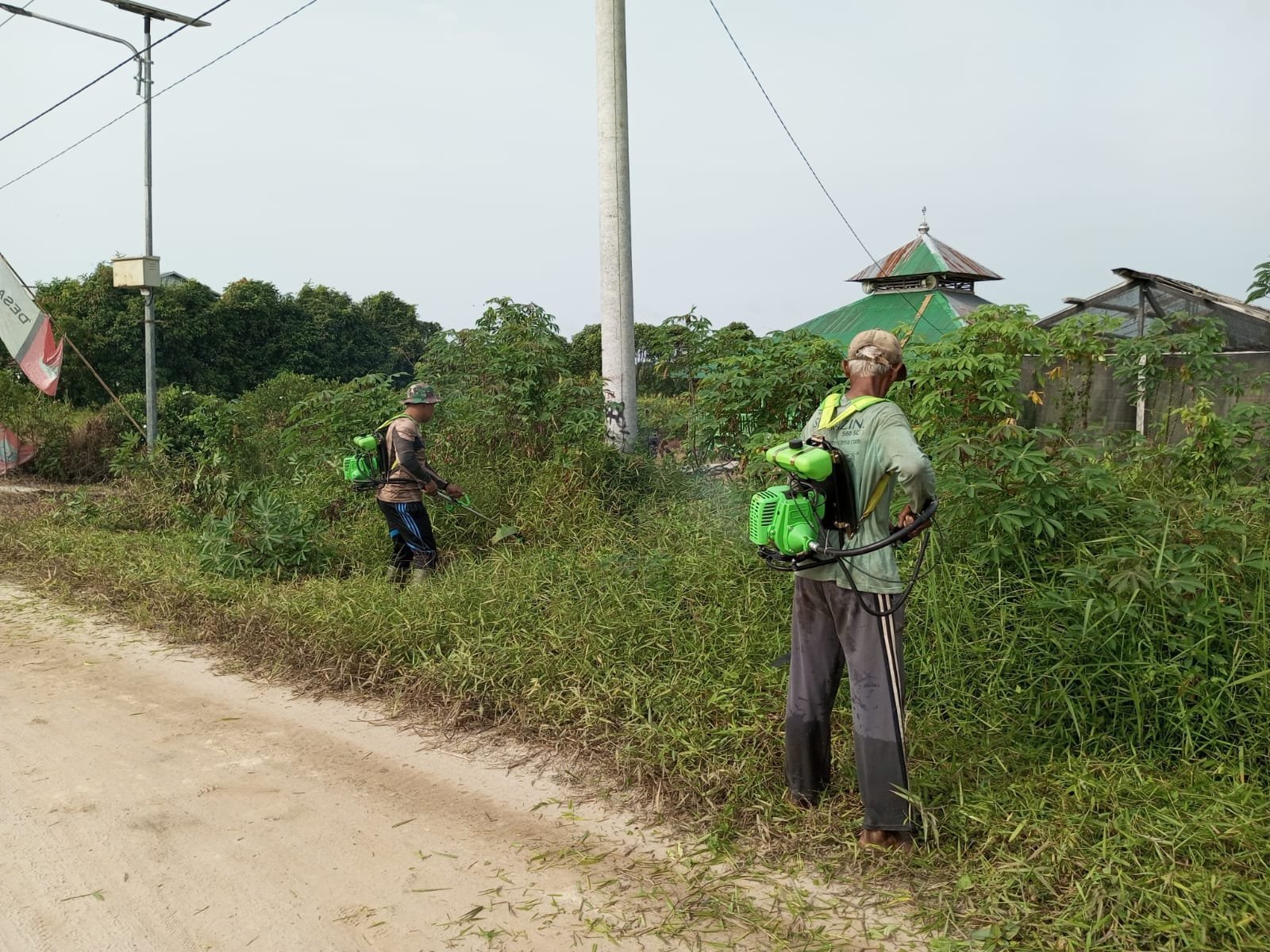 “Selain untuk kebersihan dan keasrian desa, pembersihan juga menyasar pohon-pohon disekitar perumahan yang dianggap membahayakan bila terjadi angin kencang”, tambah Koptu Saiful.