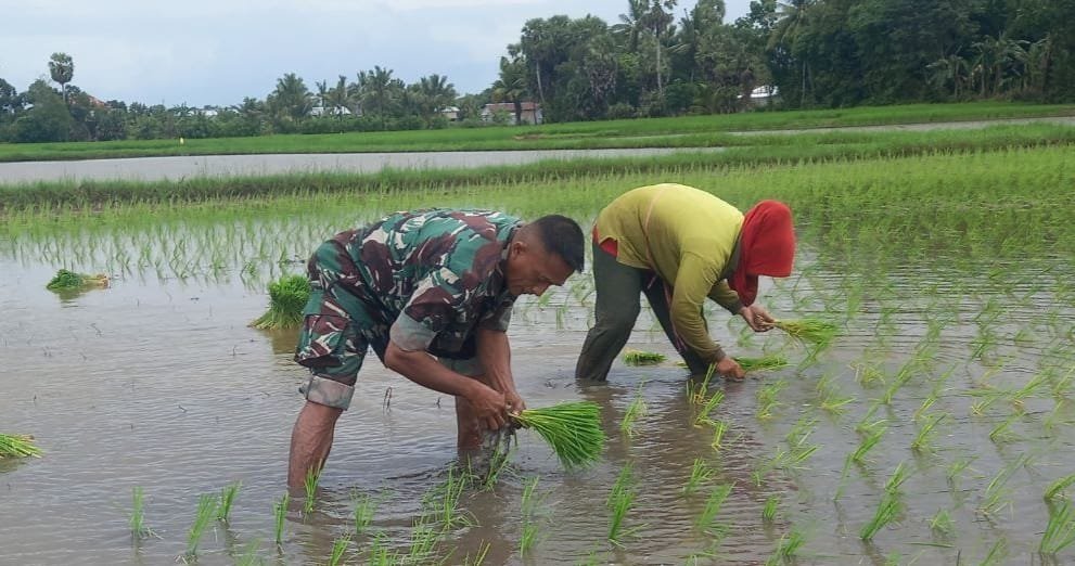 TAKALAR – Dukung Ketahanan Pangan, Babinsa Jajaran Kodim 1426/Takalar aktif bantu Petani Tanam Padi. Seperti yang dilakukan oleh Babinsa Kel. Pa’bundukang Serka Dirman melakukan pendampingan terhadap petani dengan membantu dalam menanam padi, bertempat di Kelurahan Pa’bundukang, Kecamatan Polongbangkeng Selatan, Kabupaten Takalar. Selasa (28/01/2025).