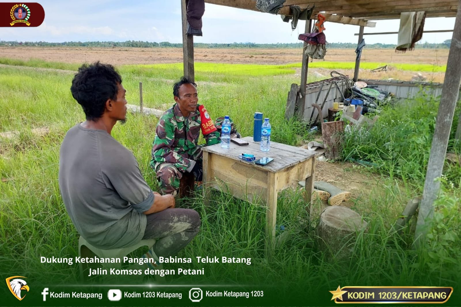 KAYONG UTARA – Untuk mempererat hubungan antara TNI dan masyarakat, Babinsa Koramil 15/Teluk Batang Kodim 1203/Ketapang Sertu Wahid Usman melakukan Komunikasi Sosial (Komsos) dengan para petani di Desa Alur Bandung, Kecamatan Teluk Batang, Kabupaten Kayong Utara, Minggu (29/06/25)