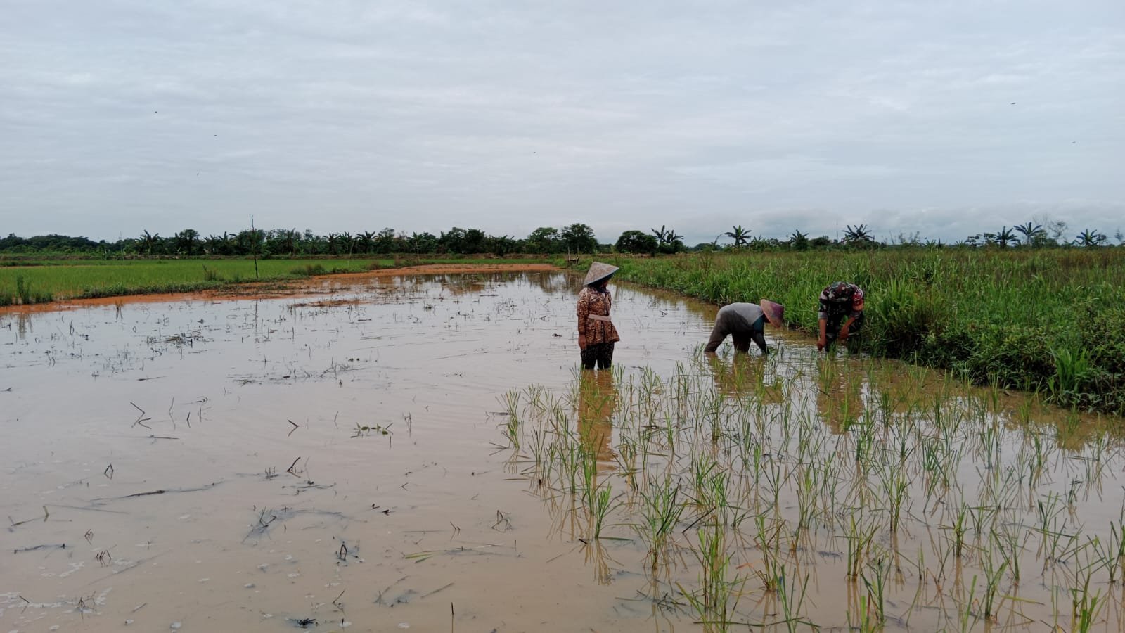 TAPIN – Dalam upaya mendukung ketahanan pangan wilayah, Babinsa Koramil 1010-07/Piani melaksanakan pendampingan penanaman padi bersama para petani di Kampung Impat, Desa Binderang, Kecamatan Lokpaikat, Minggu (22/2/2026).