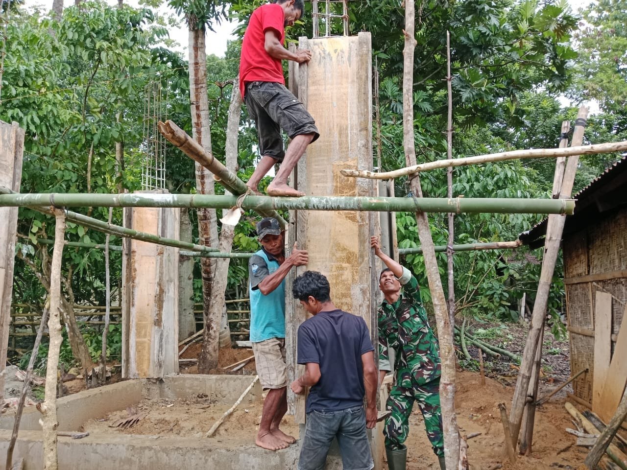 Kegiatan ini melibatkan kerja keras dan semangat gotong royong antara Babinsa dan masyarakat dalam rangka menciptakan fasilitas yang akan bermanfaat jangka panjang bagi warga.