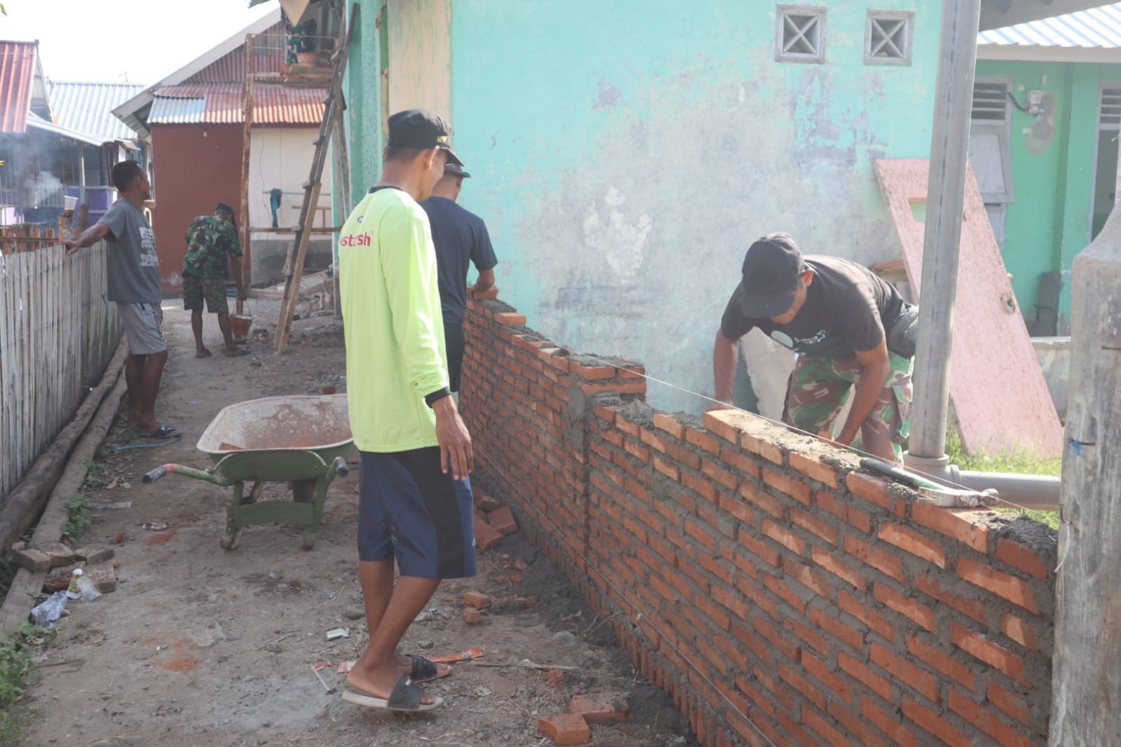 Babinsa dan warga tampak begitu bersemangat dalam pembangunan jalan kampung itu. Dengan kompaknya mereka mengolah material pasir, batu dan semen, kemudian dilanjutkan dengan proses pengecoran jalan.