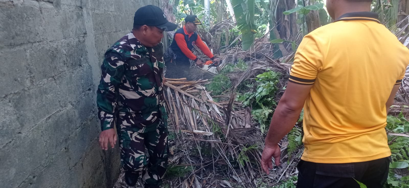 Babinsa Sampalan Tengah Serka Made Arta saat dikonfirmasi disela evakuasi mnejelaskan bahwa tumbangnya pohon aren ini kemungkinan besar disebabkan oleh cuaca ekstrem hujan yang disertai angin yang cukup kencang.