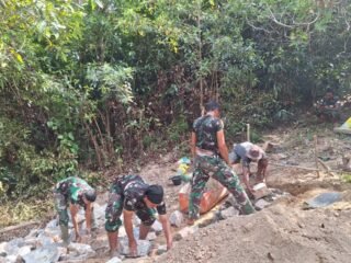 Kendari – Pengerjaan jembatan dalam program TMMD ke-127 Kodim 1417/Kendari memasuki tahap krusial di Kelurahan Sambuli, Minggu (22/2).