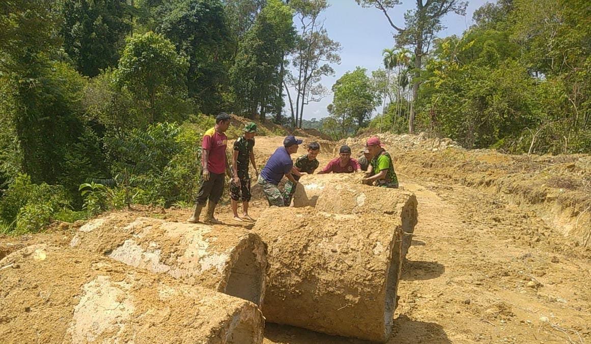 Kapten Inf Amrin yang berada di lokasi menjelaskan bahwa gorong-gorong berfungsi sebagai saluran air agar konstruksi jalan tetap kuat.
