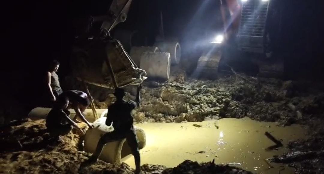 Sabtu malam (7/3/2026), di titik 250 dari titik nol pembangunan jalan, gorong-gorong mulai dipasang. Material yang berat diposisikan dengan penuh kehati-hatian agar nantinya mampu mengalirkan air dengan baik ketika musim hujan datang.