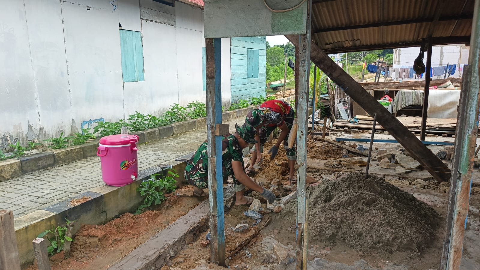 Kegiatan pembangunan yang dilakukan secara bergotong royong ini menampilkan sinergi kuat antara prajurit TNI dan masyarakat dalam menghadirkan hunian yang lebih sehat dan layak bagi warga penerima bantuan.