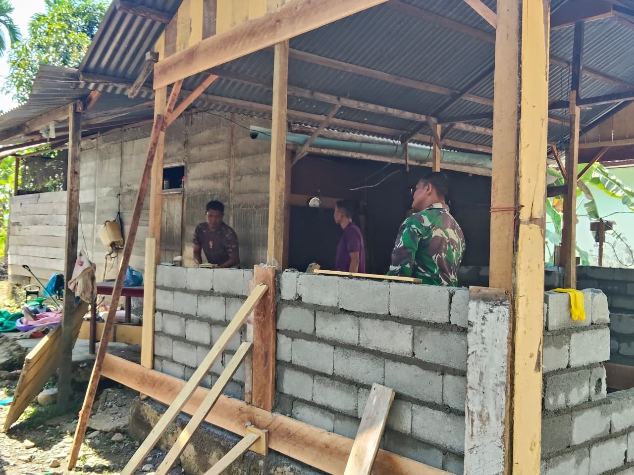 Program rehab RTLH menjadi salah satu sasaran tambahan fisik TMMD yang menyentuh langsung kebutuhan masyarakat kecil. Kehadiran prajurit memberi semangat tersendiri bagi warga sekitar.