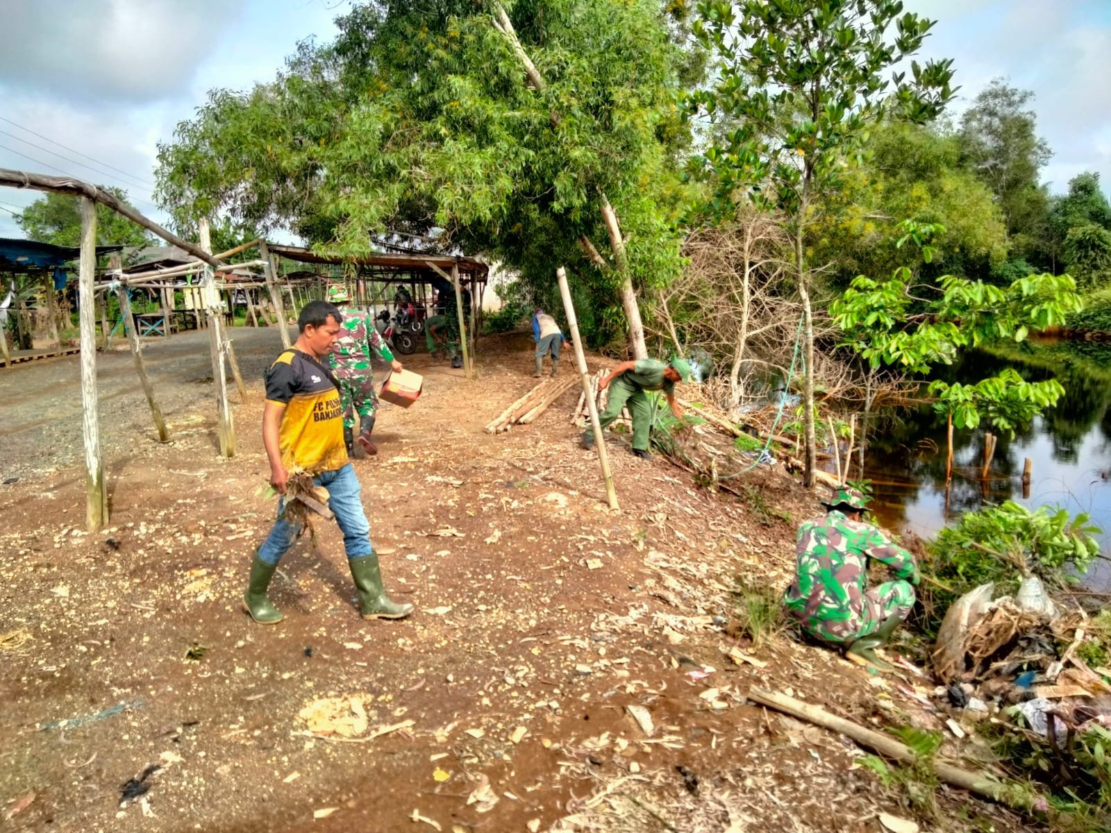 Kegiatan dimulai dengan pembersihan area pasar dan selokan yang selama ini menjadi titik rawan genangan air. Setelah itu, dilanjutkan dengan penanaman pohon di sekitar wilayah koramil dan bantaran air. Penanaman pohon tidak hanya bertujuan memperindah lingkungan, tetapi juga memperkuat daya serap tanah terhadap air hujan sehingga dapat mengurangi risiko banjir.