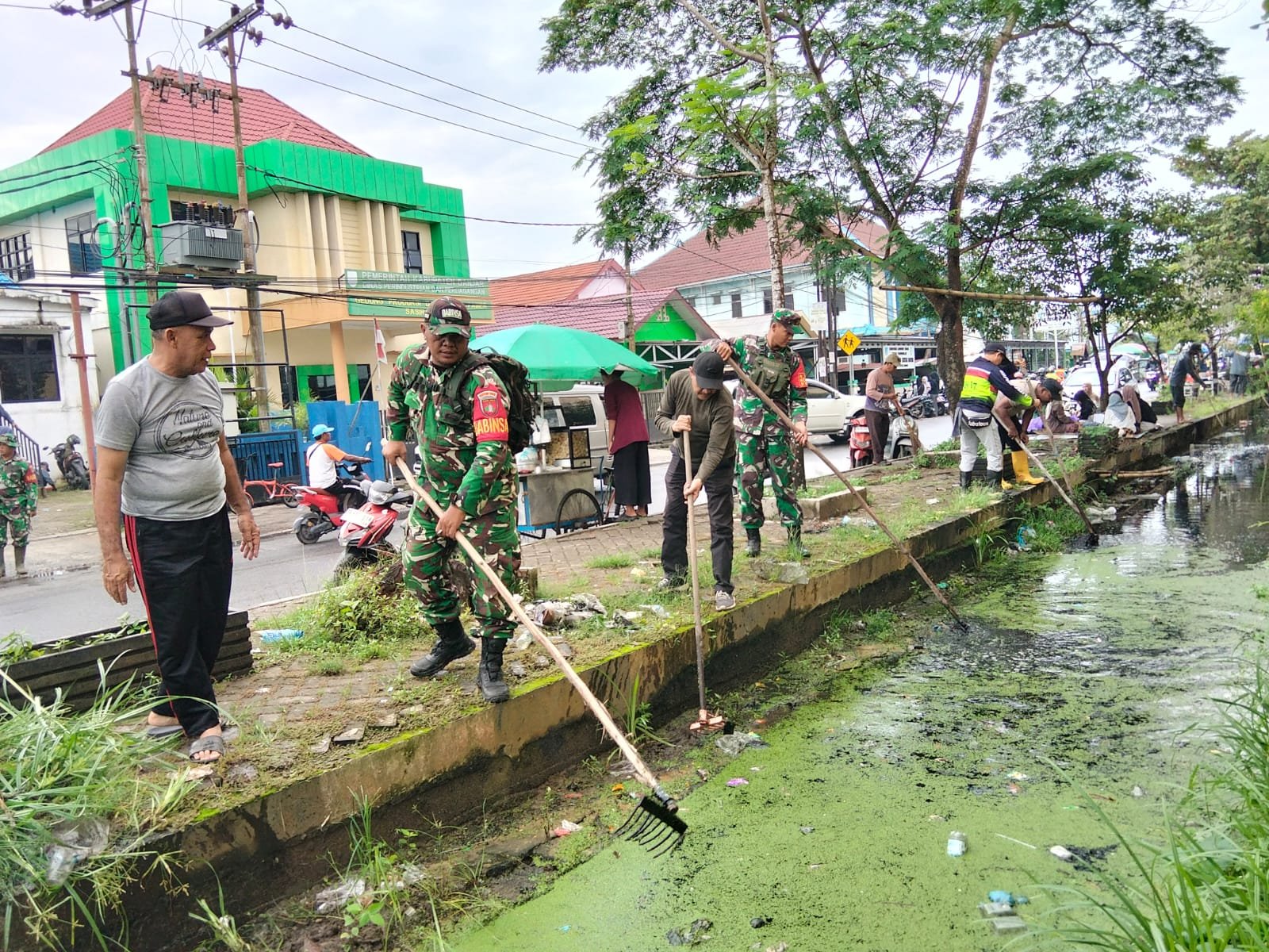 BANJAR – Koramil 1006-10/Kertak Hanyar Kodim 1006/Banjar melaksanakan kegiatan gotong royong pembersihan aliran air dan selokan bersama unsur Kecamatan Kertak Hanyar, Polsek Kertak Hanyar, Puskesmas Kertak Hanyar, PD Pasar Kertak Hanyar, Ketua RW dan RT, Linmas Kelurahan Kertak Hanyar I, serta pihak sekolah SDN Kertak Hanyar 1 dan SDN Kertak Hanyar 3.