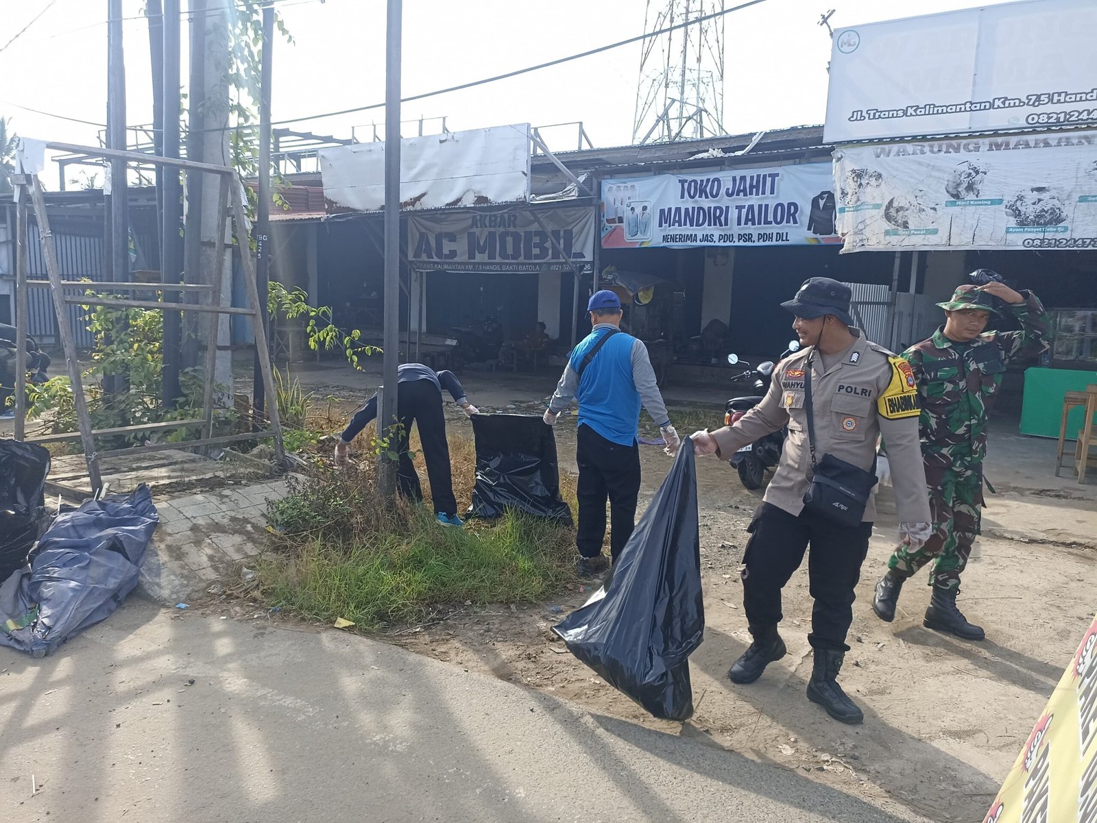 Dengan peralatan sederhana seperti sapu lidi, cangkul, dan karung sampah, para prajurit dan warga mengangkat tumpukan sampah, membersihkan saluran air, serta merapikan area jual beli.