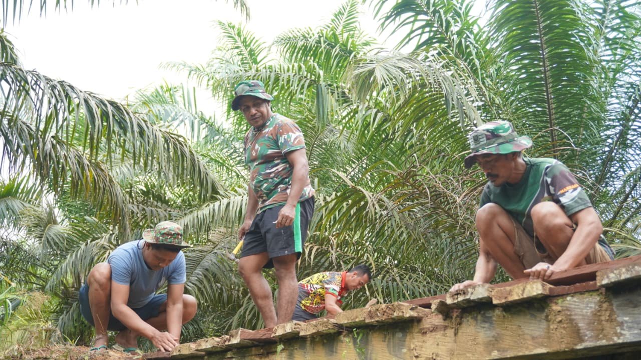 Gotong Royong Satgas TMMD 127 dan Warga Percepat Penyelesaian Jembatan