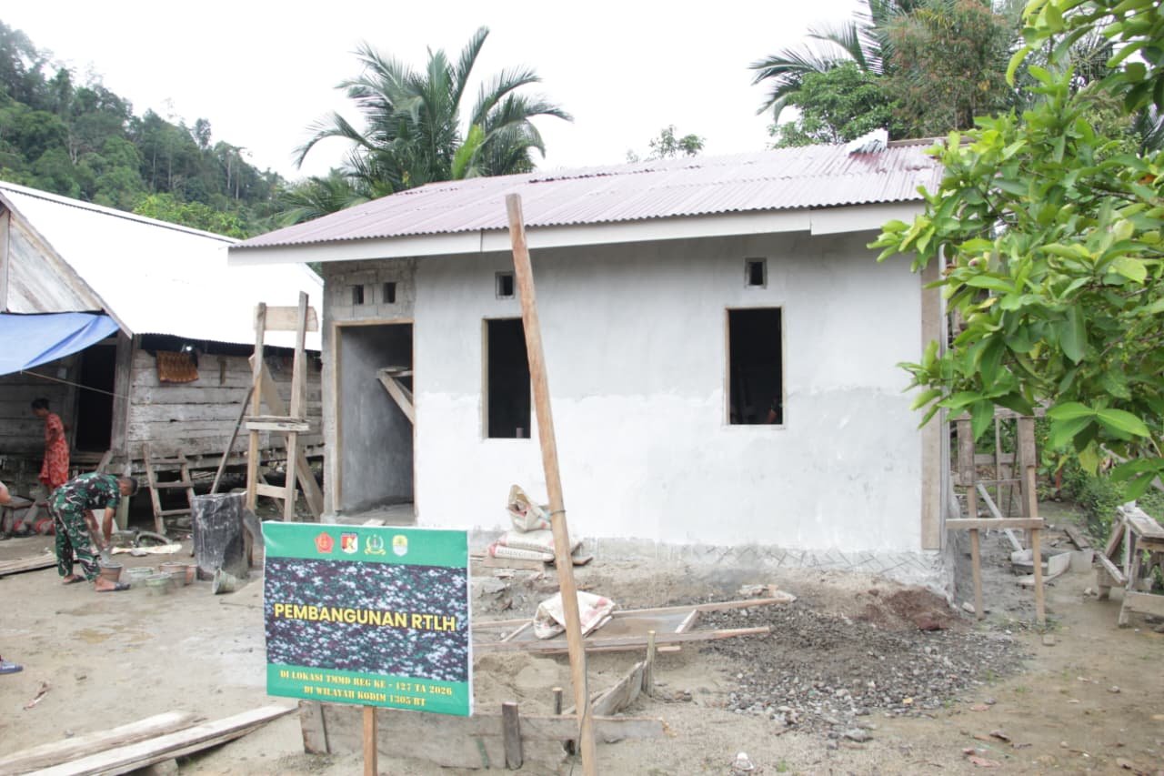 Tolitoli – Kegiatan pembangunan RTLH dalam program TMMD ke-127 terus berlanjut di Dusun Ogomolobu, Desa Oyom, Kecamatan Lampasio, Kabupaten Tolitoli, Sabtu (21/2/2026).