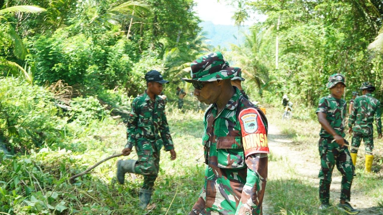 Kaimana – Pelaksanaan TMMD ke-127 pada 18 Februari 2026 menghadirkan semangat kebersamaan antara Satgas TMMD dan masyarakat dalam proses pembukaan jalan di Kampung Sisir.
