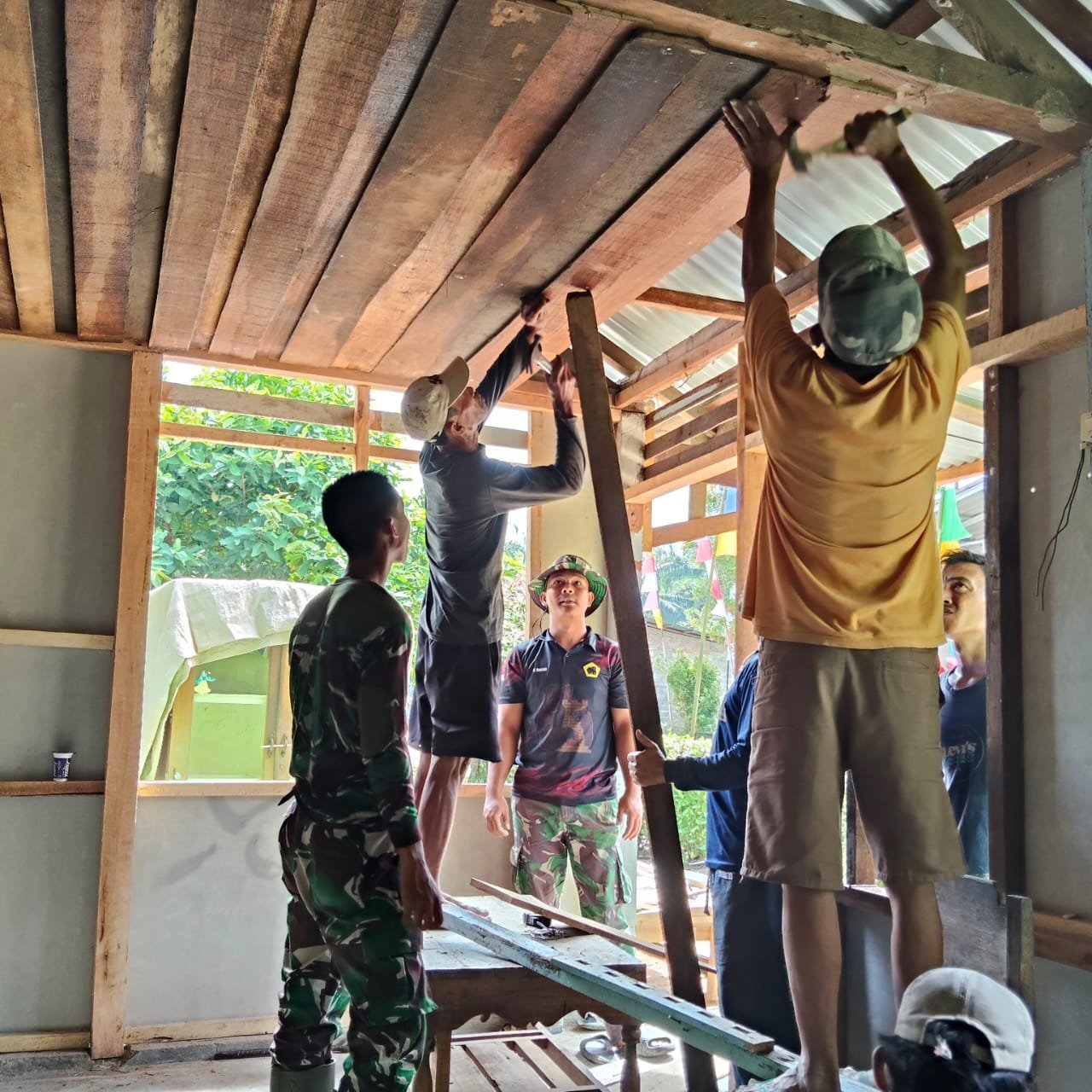 Suasana gotong royong juga tampak dari antusiasme warga yang turut membantu membersihkan area sekitar dan menyiapkan peralatan kerja. Warga merasa bangga bisa terlibat langsung bersama TNI dalam membangun fasilitas umum untuk kampung mereka.