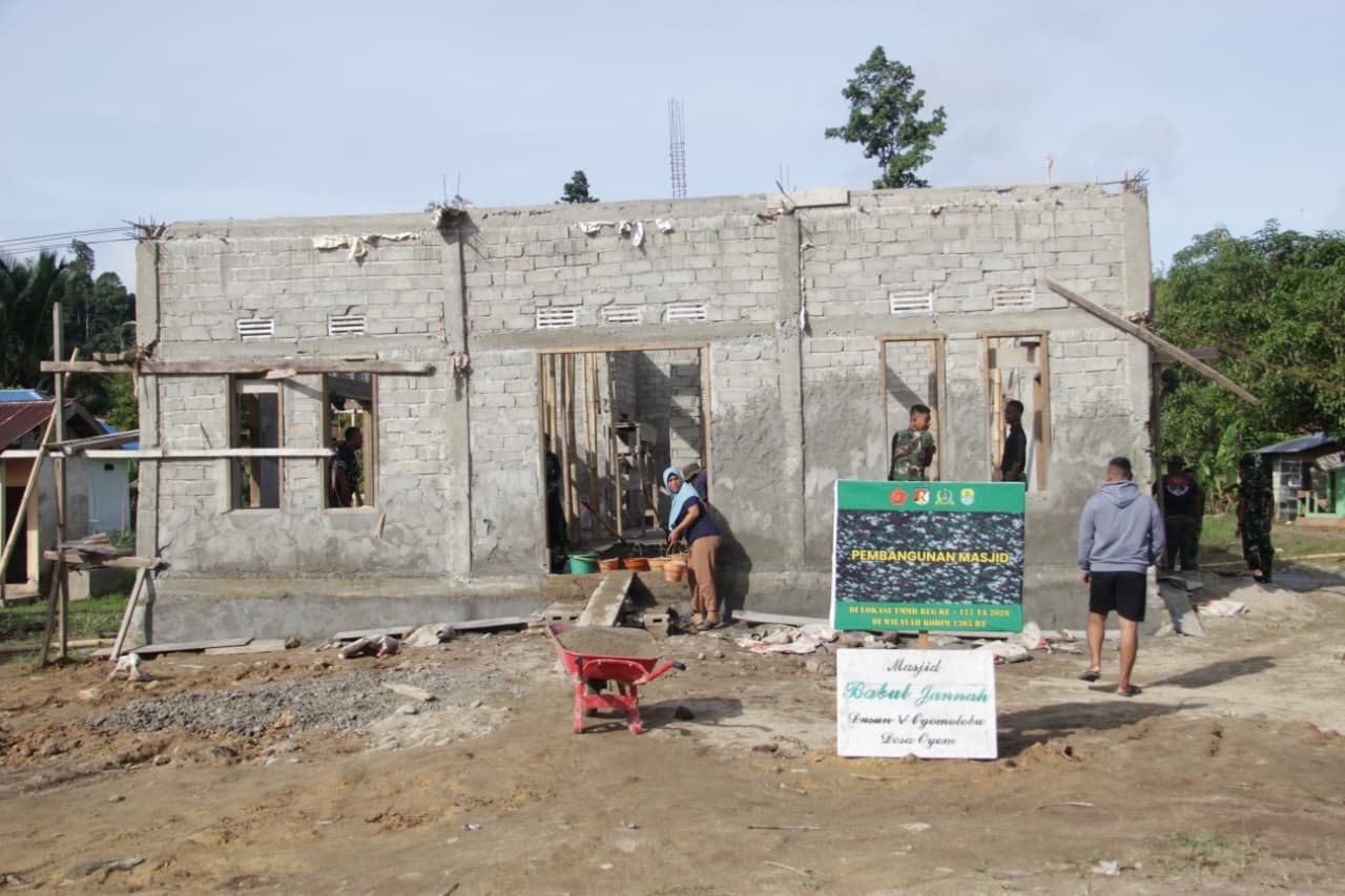 Tolitoli – Kebersamaan dan semangat gotong royong mewarnai pembangunan masjid di Dusun Ogomolobu, Desa Oyom, Kecamatan Lampasio, Kabupaten Tolitoli, dalam rangka kegiatan TMMD ke-127, Senin (23/2/2026).