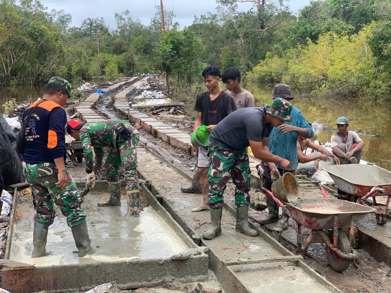 Sejak pagi, anggota Satgas TMMD bersama warga tampak kompak bahu membahu melanjutkan pengecoran jalan yang menjadi akses vital bagi masyarakat desa. Kegiatan ini merupakan bagian dari program TMMD Reguler ke-124 yang bertujuan meningkatkan kesejahteraan masyarakat melalui pembangunan fisik dan nonfisik.