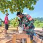 Kebersamaan yang terjalin mencerminkan kuatnya kemanunggalan TNI dengan rakyat dalam membangun desa.