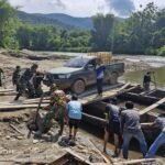 Suasana kerja penuh kekeluargaan tampak jelas. Warga membantu mengangkat kayu, sementara prajurit TNI dengan cekatan memasang balok dan menyusun kerangka atap. Semangat gotong royong menjadi roh utama pelaksanaan TMMD di daerah terpencil ini.