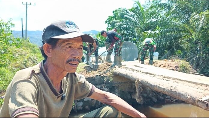 Ungkapan tersebut disampaikan Hamdan di sela-sela kegiatan gotong royong bersama prajurit TNI dalam tahap awal pembangunan jembatan di Desa Pasi Rasian, Kecamatan Pasie Raja, Kabupaten Aceh Selatan, Sabtu (04/4/2026).