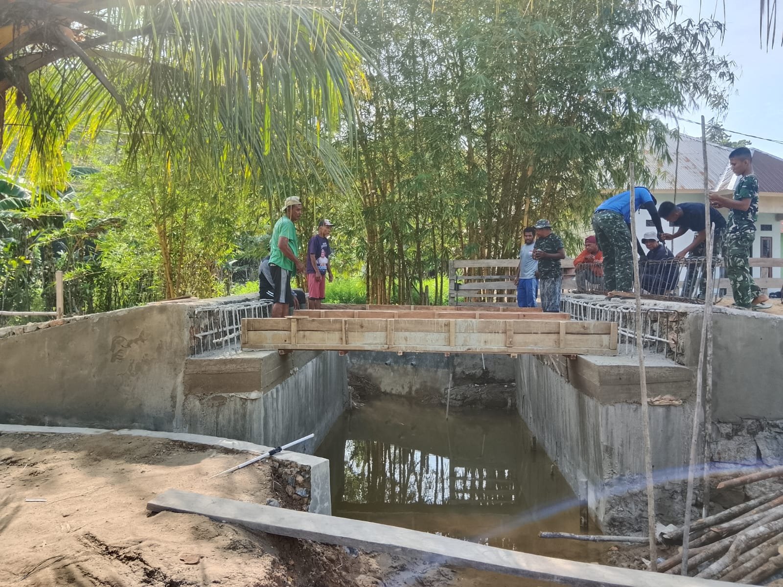 Gotong Royong TNI dan Warga Warnai Pembangunan Jembatan TMMD di Sambuli