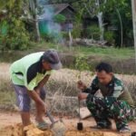 Tak hanya prajurit TNI, masyarakat setempat juga turut ambil bagian dalam proses pembangunan talud. Mereka bersama-sama mengangkat material, menyusun batu, hingga membantu proses pengadukan semen.