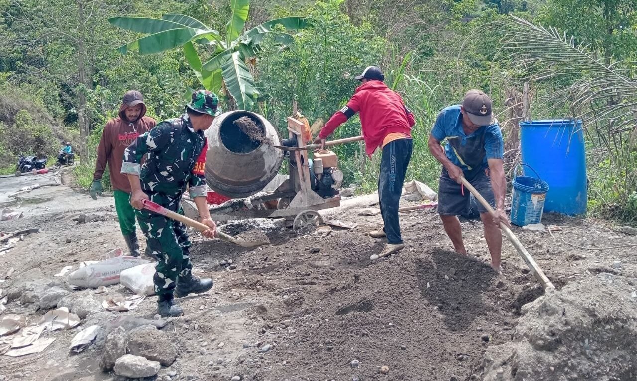 Kegiatan ini melibatkan partisipasi aktif warga yang dengan sukarela turut serta mengangkut material, mencampur adukan, hingga menuangkan cor di lokasi. Suasana penuh kebersamaan terlihat jelas ketika TNI dan masyarakat bekerja tanpa sekat, mencerminkan kuatnya ikatan kemanunggalan antara prajurit dengan rakyat.