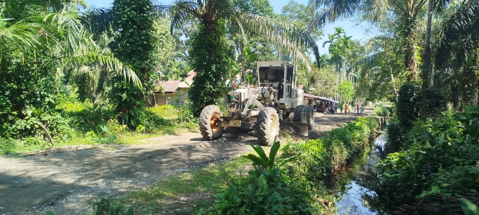 Kehadiran alat berat itu tidak mengurangi semangat warga yang tetap ikut bekerja. Mereka membantu mengangkut material, merapikan sisi jalan, hingga membersihkan jalur pembangunan.