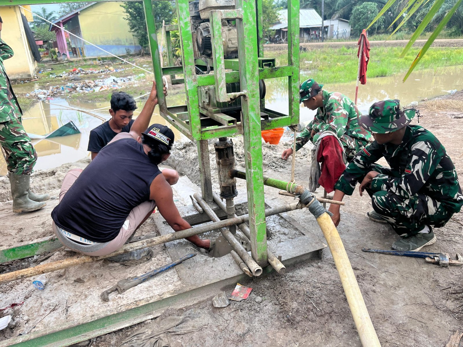 Banyuasin, 8 Maret 2026 – Menjelang penutupan program TMMD ke-127, anggota Satgas TMMD Kodim 0430/Banyuasin terus berpacu dengan waktu untuk menyelesaikan pembangunan sumur bor titik tiga yang berada di Desa Wonosari, Kecamatan Pulau Rimau, Kabupaten Banyuasin.