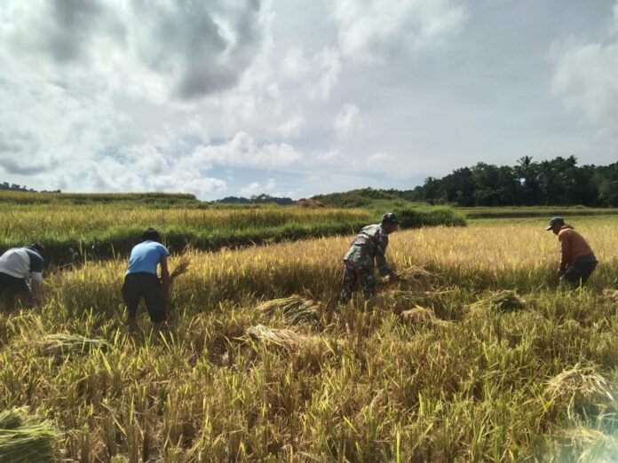 SUMBA BARAT – Dalam upaya mendukung ketahanan pangan di wilayah binaan, Babinsa Koramil 01/Loli Kodim 1613/Sumba Barat, Serma M. Saidin turut serta membantu kegiatan panen padi bersama masyarakat di desa Kalembu kuni Lec. Kota Waikabubak Kab. Sumba Barat, Jumat (03/04/2026).