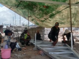 Bangun MCK yang berdiri kokoh di tengah pemukiman warga kini hampir rampung berkat kerjasama anggota Satgas TMMD 125 Kodim 1417/Kendari bersama masyarakat, kini dilakukan pengecoran jembatan mini tepat di depan MCK, Kec. Asinua, Kab. Konawe, Senin (18/8).