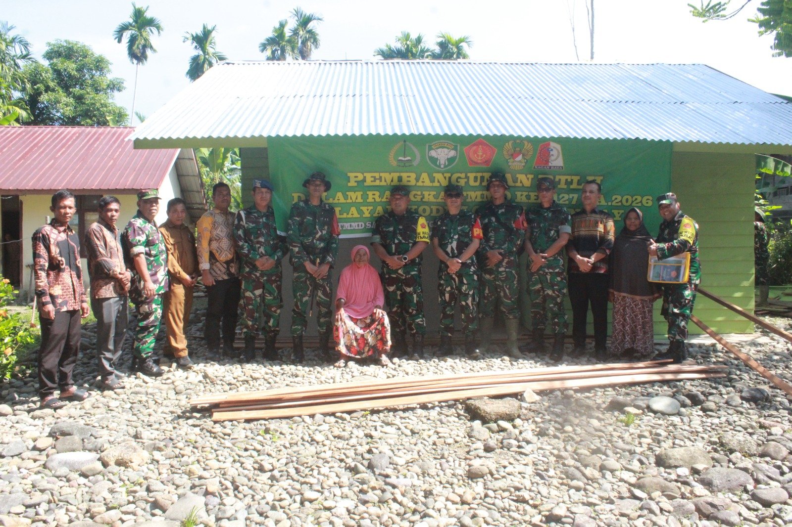 Melalui program TNI Manunggal Membangun Desa (TMMD) Ke-127 Kodim 0116/Nagan Raya, rumah yang sebelumnya tak lagi layak huni mulai diremajakan oleh Satgas TMMD bersama warga. Kayu-kayu lama diganti, dinding diperbaiki, dan bangunan yang dulu tampak renta kini berdiri lebih kokoh.