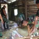 Dengan semangat kebersamaan, anggota Satgas dan warga bekerja saling bahu membahu, mulai dari menyiapkan adukan semen, menuangkan cor, hingga memastikan struktur tiang berdiri kokoh dan sesuai perencanaan.