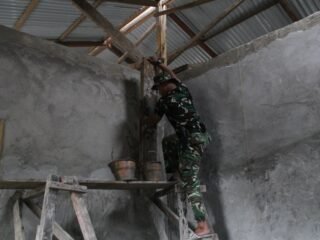 Kendari – Semangat kebersamaan tampak nyata dalam pelaksanaan program TMMD ke-127 Kodim 1417/Kendari di Kelurahan Sambuli, Selasa (24/2).