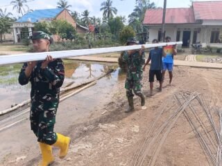 Satgas TMMD bersama unsur gabungan TNI, Polri, Pemda, serta masyarakat tetap semangat menyelesaikan pekerjaan.