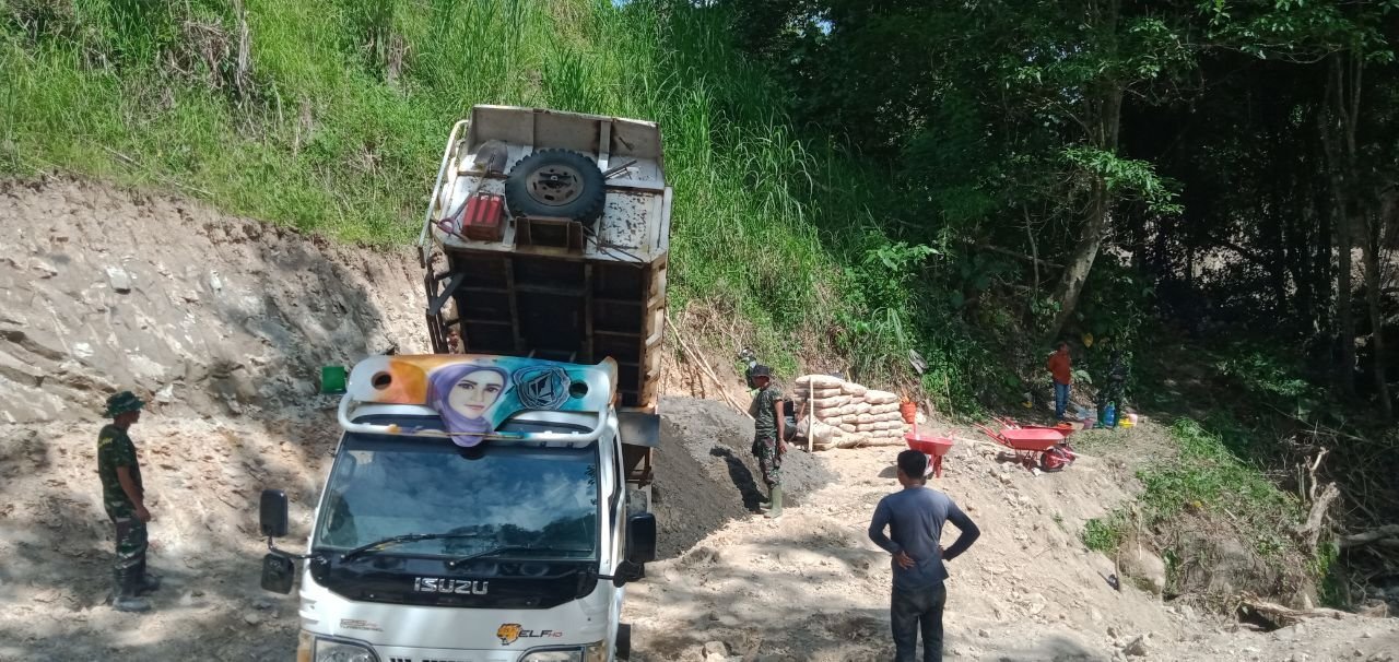 Abdya – Jajaran Babinsa Koramil 07/Babahrot Kodim 0110/Abdya bersama tim gabungan BNPB terus berjibaku melakukan perbaikan akses jalan yang terputus akibat banjir dan tanah longsor.