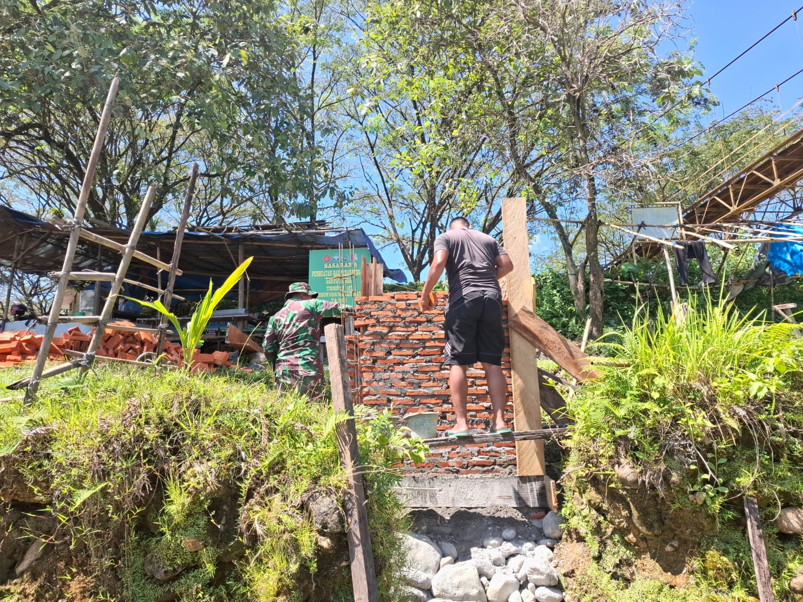 Pembangunan fasilitas tersebut merupakan bagian dari program TNI Manunggal Air Bersih yang dikolaborasikan dengan kegiatan TMMD guna mendukung ketersediaan air bersih bagi masyarakat. Meski pengerjaan dilakukan secara bertahap, kualitas bangunan tetap menjadi prioritas utama.